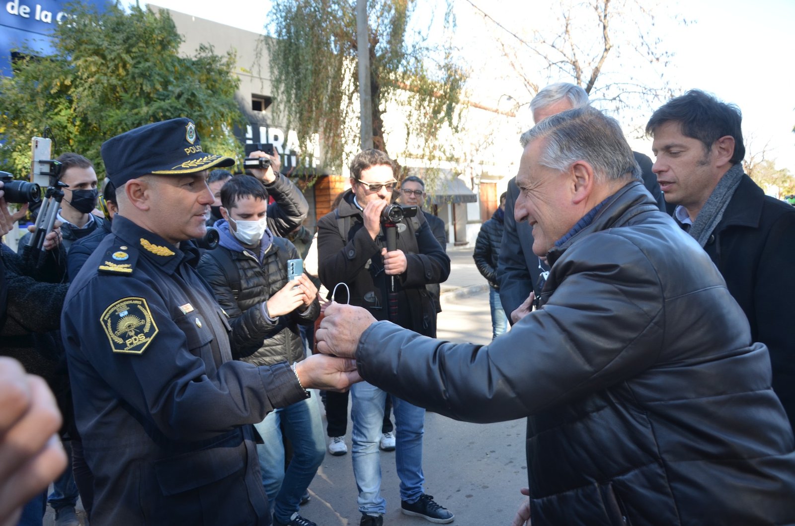El Gobernador de la provincia de Buenos Aires Axel Kicillof, realizó entrega de escrituras en el Cine Teatro Municipal de la vecina ciudad de General Belgrano, y posteriormente el intendente de esa ciudad Osvaldo Dinapoli, junto al Gobernador de la provincia de Buenos Aires Axel Kicillof, hicieron entrega de cinco nuevos patrulleros al Jefe de la Policía Comunal.