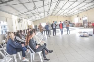 Luego del acto de entrega del Desfibrilador Externo Automático, el primero de estos equipos que es destinado a una de las comunidades rurales del partido, los funcionarios estuvieron en la Escuela N° 3 y JIRIIM N° 7.