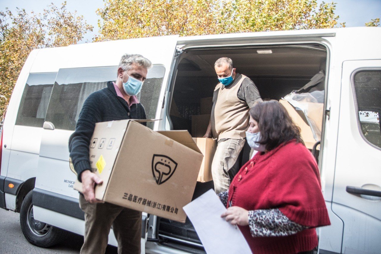La Secretaria de Salud municipal recibió del Ministerio de Salud de la provincia de Buenos Aires, otro envío de materiales descartables y sanitarios consistente en 150 barbijos N95, 6000 barbijos quirúrgicos, 180 protectores oculares (antiparras), 250 envases de alcohol en gel, 200 máscaras, 200 camisolines y 260 cajas de guantes de 100 unidades cada una.