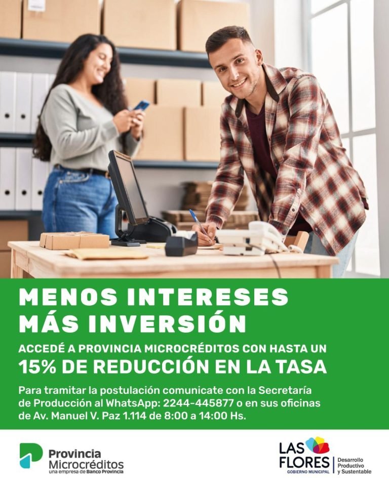 Permite que vecinos y vecinas de Las Flores que desarrollen actividades por cuenta propia, ya sean emprendimientos, comerciales, producciones artesanales, entre otros, y cuenten con 6 meses de antigüedad en la actividad, puedan ser beneficiarios de esta herramienta con una tasa de interés preferencial con hasta un 15% de reducción sobre la tasa vigente en la Banca de la Provincia de Buenos Aires.