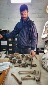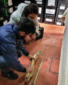 Durante su visita, el Dr. Chimento tuvo la oportunidad de observar e identificar restos fósiles de gran valor y apreciar la riqueza del acervo paleontológico del museo.