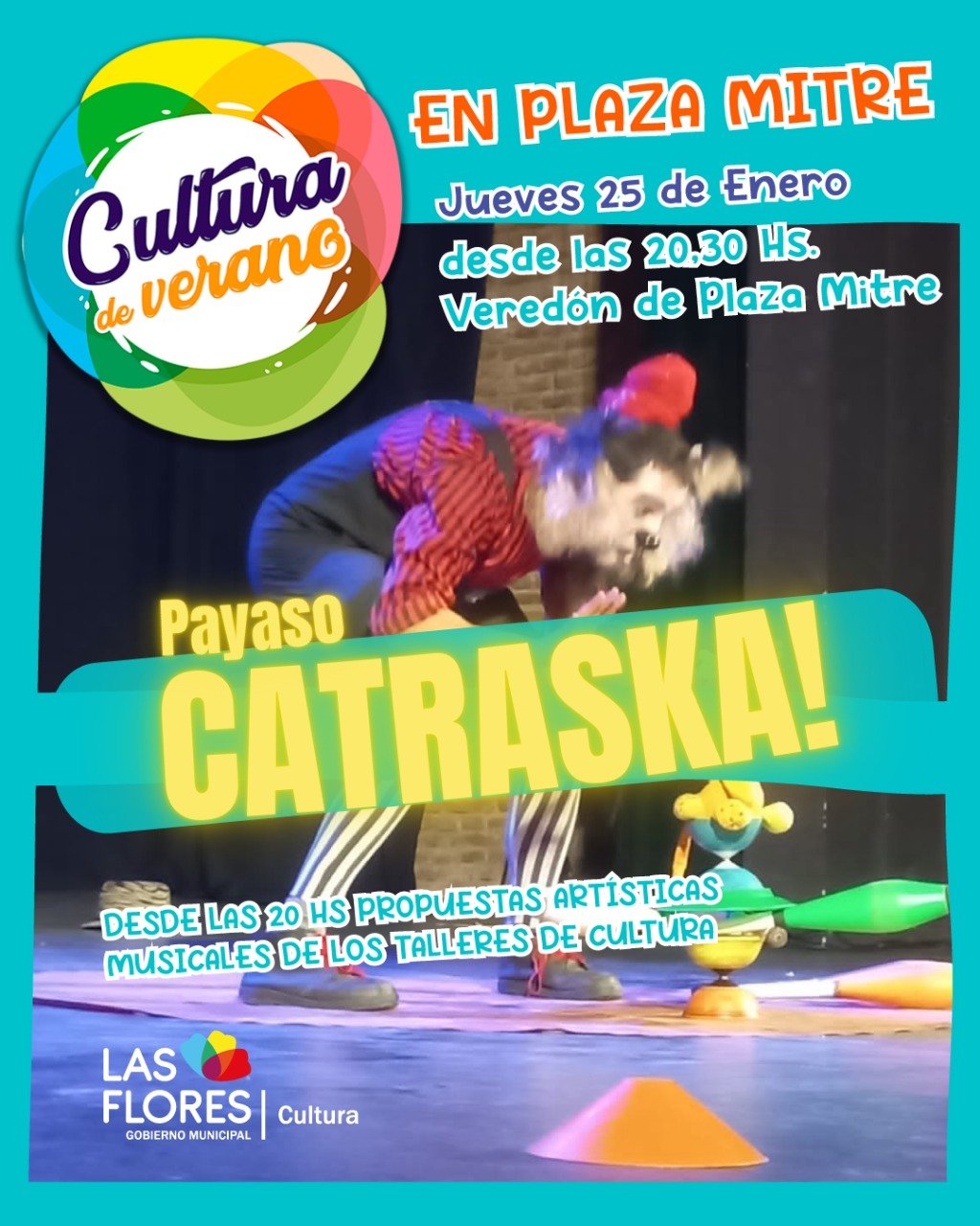 Este jueves 26 de enero desde las 20.30 horas en el veredón de Plaza Mitre, la Secretaría de Cultura presentará todo el humor y la alegría del Payaso Catraska del Circo El Zopetón.