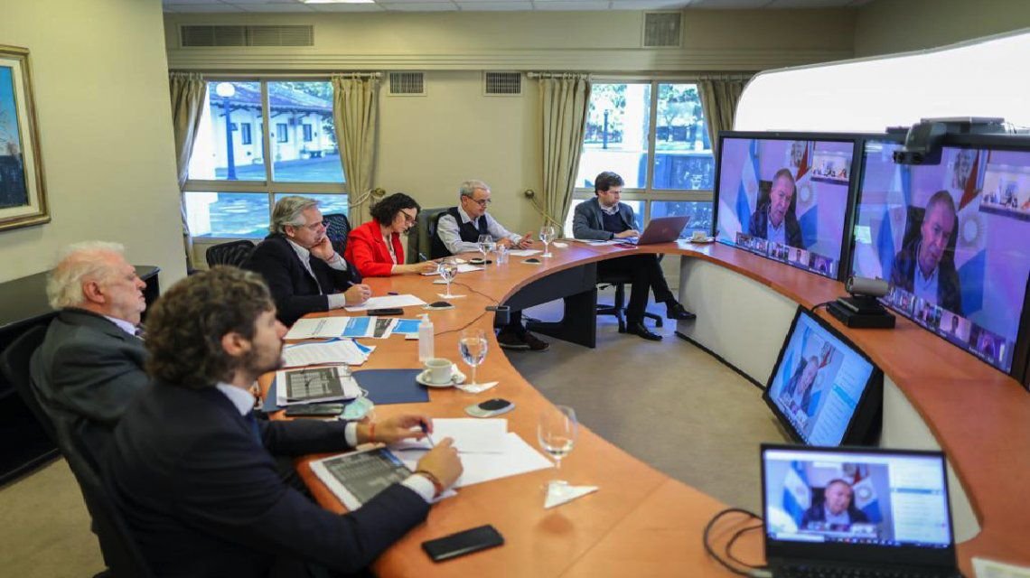 La reunión virtual tuvo como principal objetivo hacer un seguimiento provincia por provincia de la situación de cuarentena frente al Covid-19. El mandatario les anticipará cómo seguirá la cuarentena general, antes de que realice el anuncio oficial que sería en horas de la noche de este jueves.