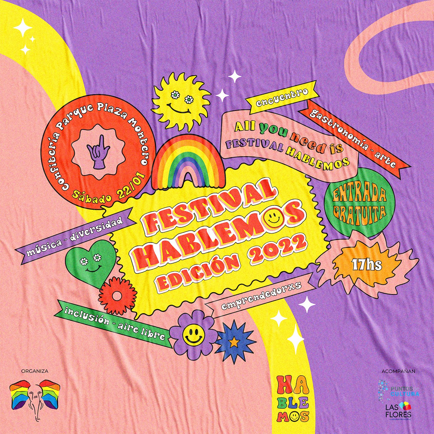 Este sábado 22 de enero se realizará una nueva edición del Festival Hablemos, el evento de arte, género y diversidad organizado por el Espacio Hablemos con el apoyo de la Secretaría de Cultura de la Municipalidad de Las Flores y el Ministerio de Cultura de la Nación.