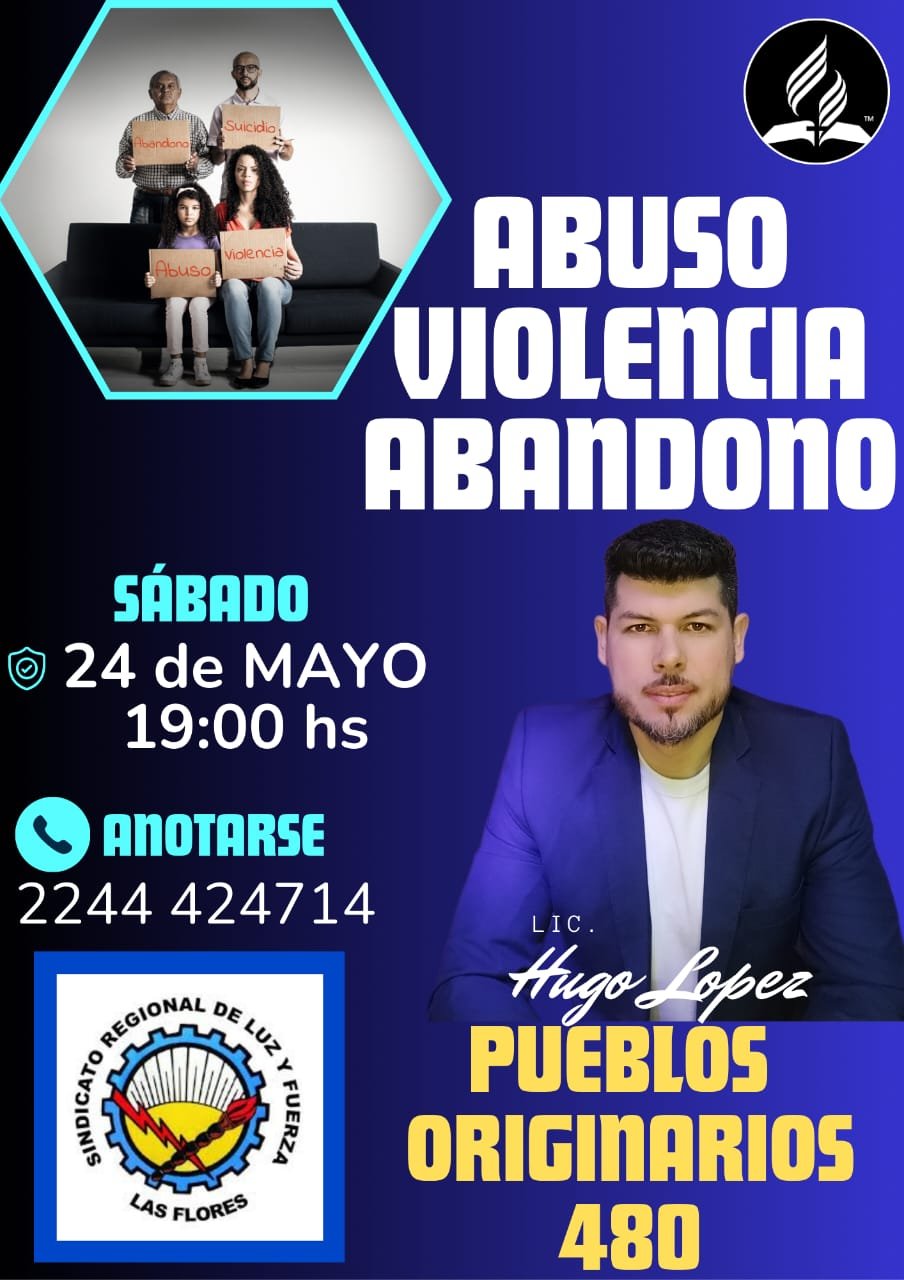 El sábado 24 de mayo, el Sindicato Regional de Luz y fuerza invita al curso que brindará el licenciado Hugo López sobre Abuso, violencia, abandono.