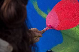 El mural pintado por Eliana tuvo como eje central el medioambiente y el ecosistema de nuestro territorio y la consideración sobre la flora y la fauna.