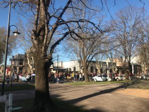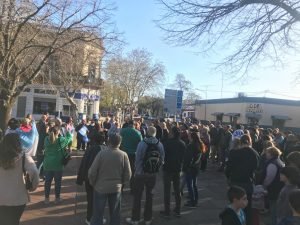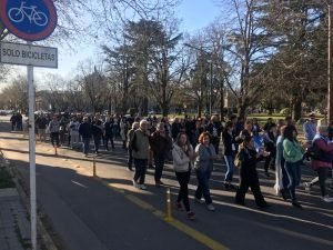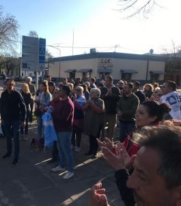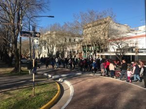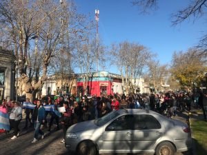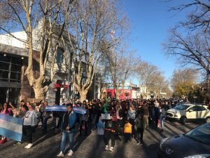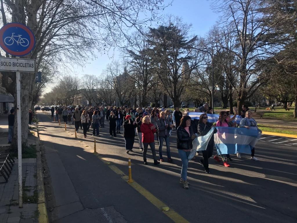 El punto de encuentro fue en Plaza Mitre a las 16,30 hs y se marchó simbólicamente alrededor de la misma, al culminar se cantó el Himno Nacional Argentino e hicieron uso de la palabra dirigentes de distintos sectores y ciudadanos.