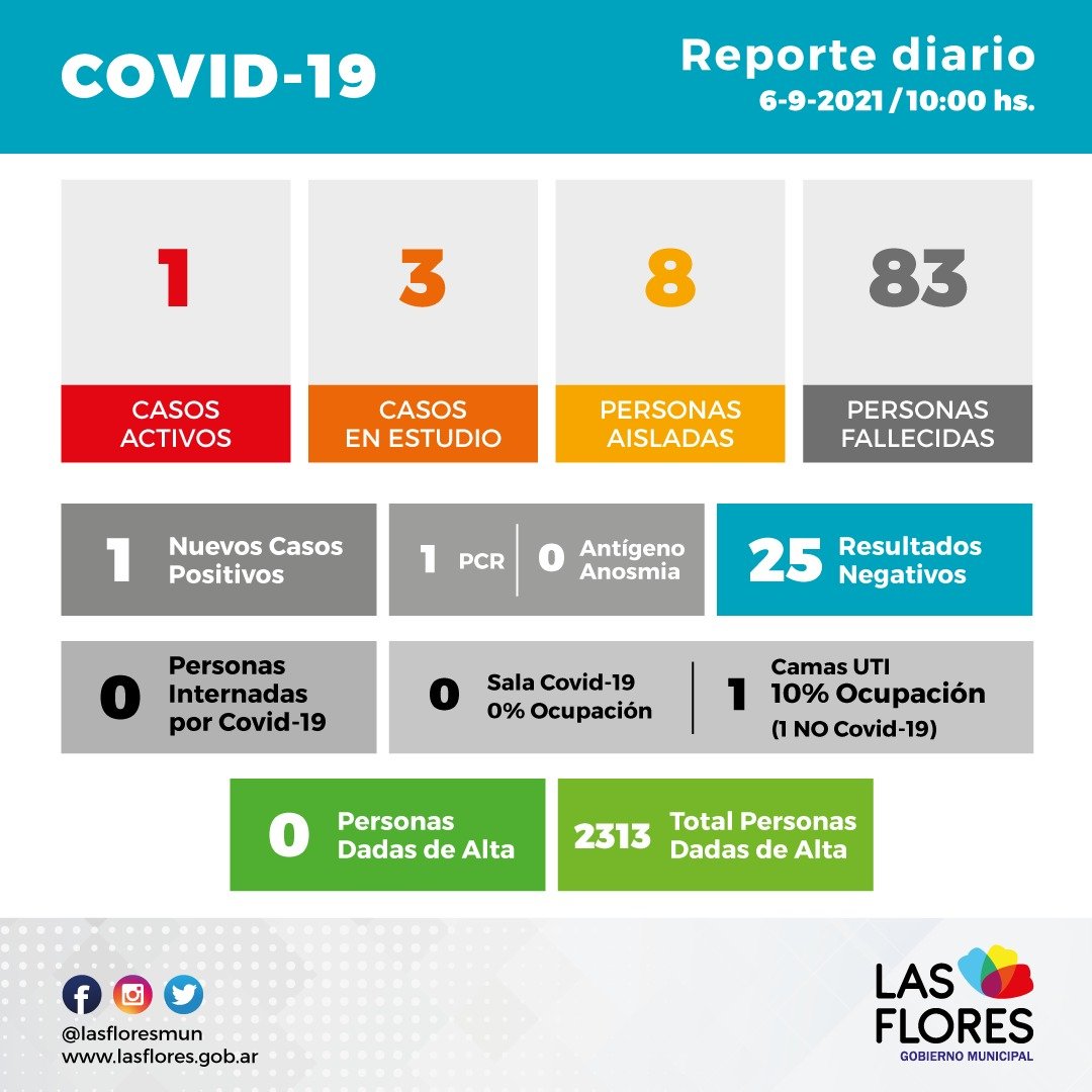 Al día de la fecha hay un 1 caso activo por Covid-19.
