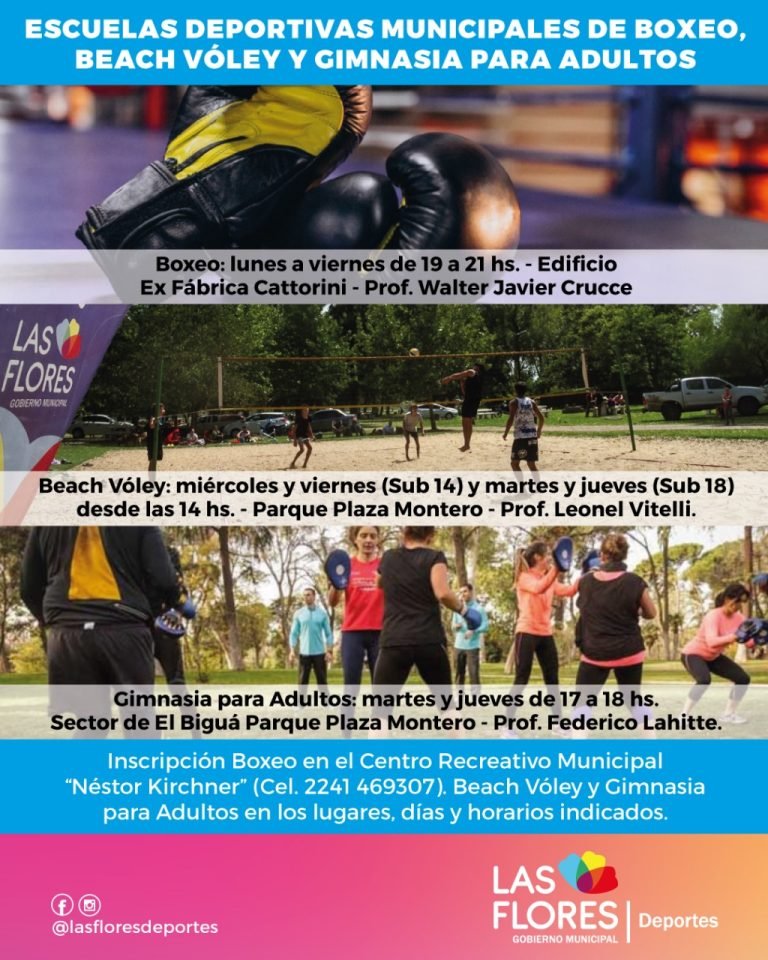 La Secretaría de Deportes y Cultura informa que se encuentran en funcionamiento las Escuelas Deportivas Municipales de Boxeo, Beach Vóley y Gimnasia para Adultos.