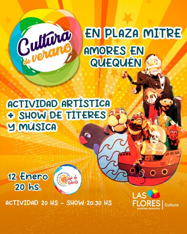 Este jueves 12 de enero a las 20 horas en la Plaza Mitre, en marco del programa “Cultura de Verano” diseñado por la Secretaría de Cultura, se realizará un show de títeres y música denominado “Amores en Quequén”.