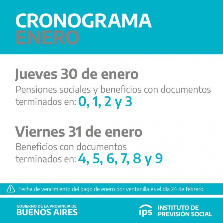 El Instituto de Previsión Social Bonaerense (IPS) difundió el cronograma en el que los jubilados y pensionados percibirán el cobro del mes de enero.