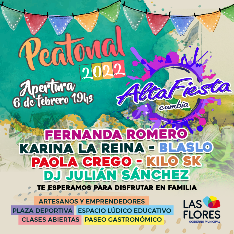 El paseo peatonal contará con Feria de Emprendedores, paseo gastronómico, juegos infantiles, Juegos deportivos, Intervenciones artísticas a cargo de Manuela Nunez y Daniela Pardo y talleres culturales.