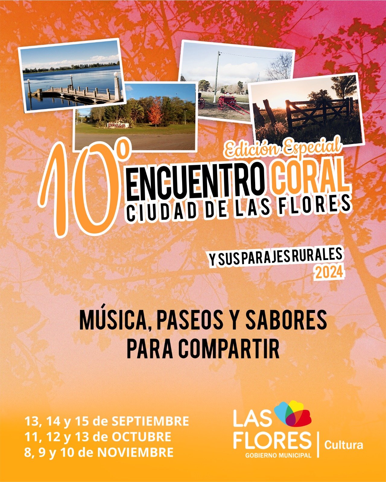 El próximo viernes 13 de septiembre a las 21 Hs, con un concierto que se realizará en el Templo Parroquial Nuestra Señora del Carmen, dará comienzo la edición especial del 10 ° Encuentro Coral Ciudad de Las Flores.