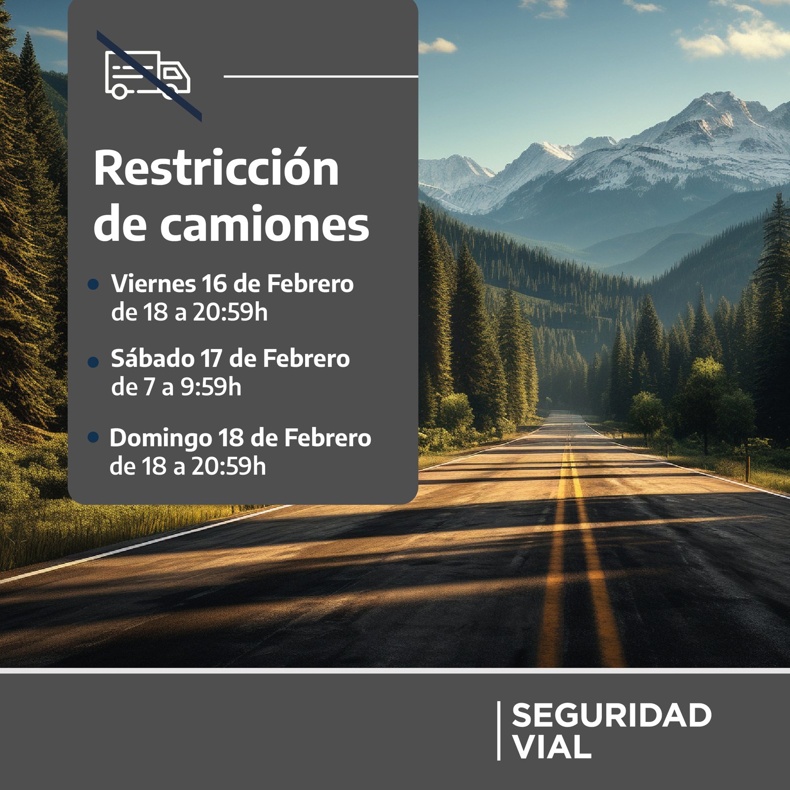 Rutas, fechas y horarios: https://www.argentina.gob.ar/seguridadvial/restriccion-de-camiones/febrero-2024