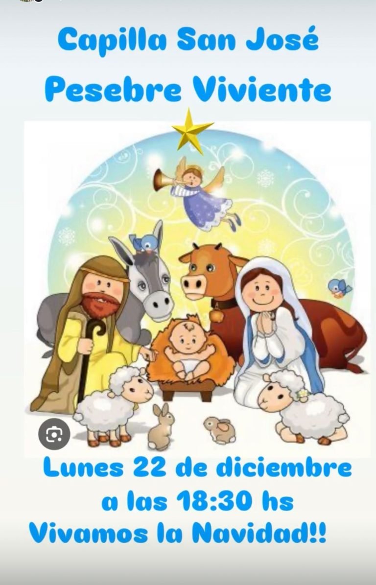 Capilla San José invita a vivir la navidad esta tarde a las 18:30 hs junto al pesebre viviente. Podes formar parte, caracterizarte, participar o simplemente acompañar rezando y cantando.
