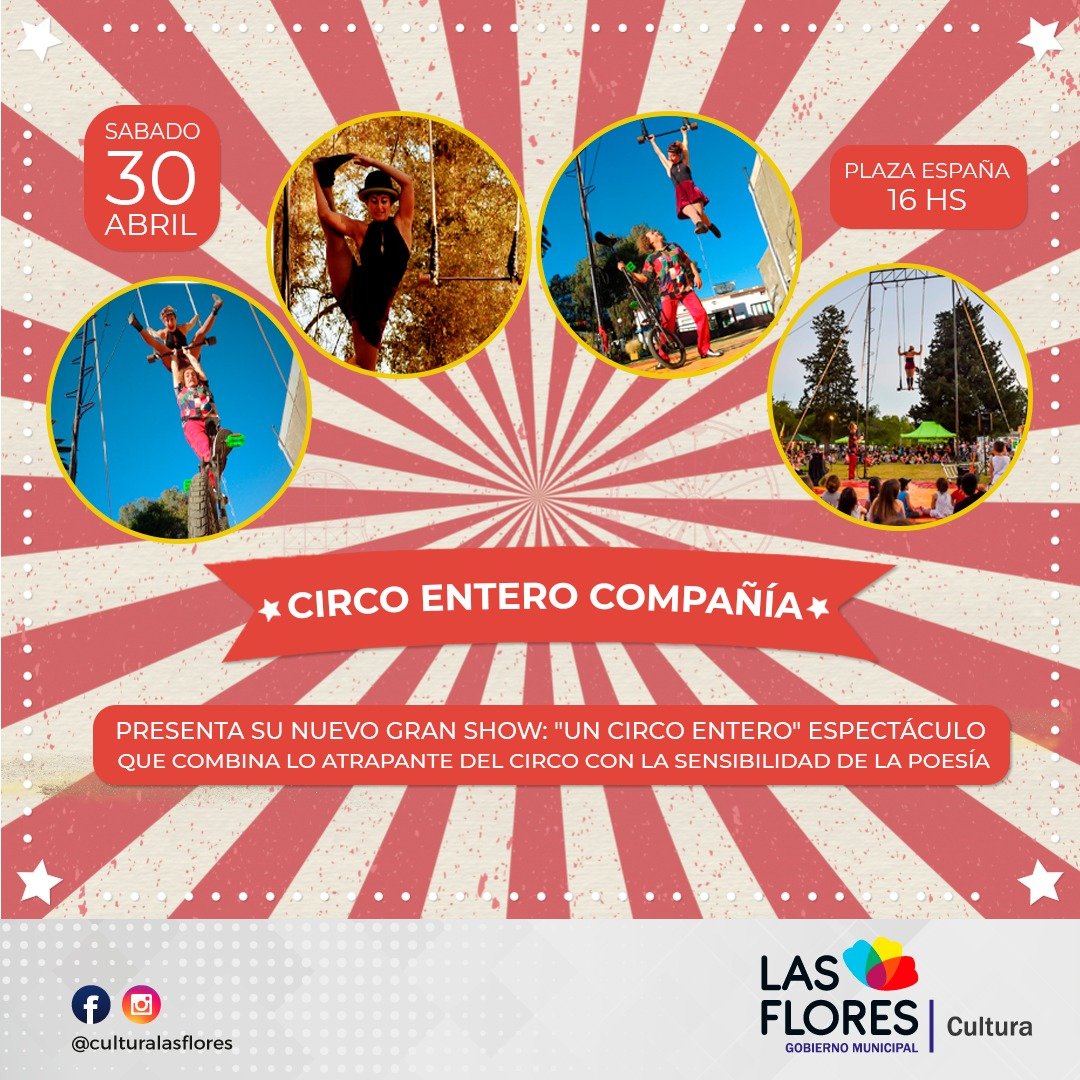 Este sábado desde las 16 hs se iniciará el espectáculo “Un Circo Entero”, un gran show que combina lo atrapante del circo con la sensibilidad de la poesía, más la sorpresa constante que sus dos personajes ofrecen en cada acto.