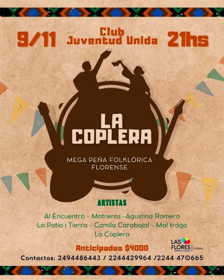 Este sábado 9 de noviembre se viene una mega peña folclórica florense en el Club Juventud Unida. A partir de las 21 hs podrás acercarte a disfrutar de nuestra música, sacarte las ganas de bailar y recibir el dia de la tradición con todo.