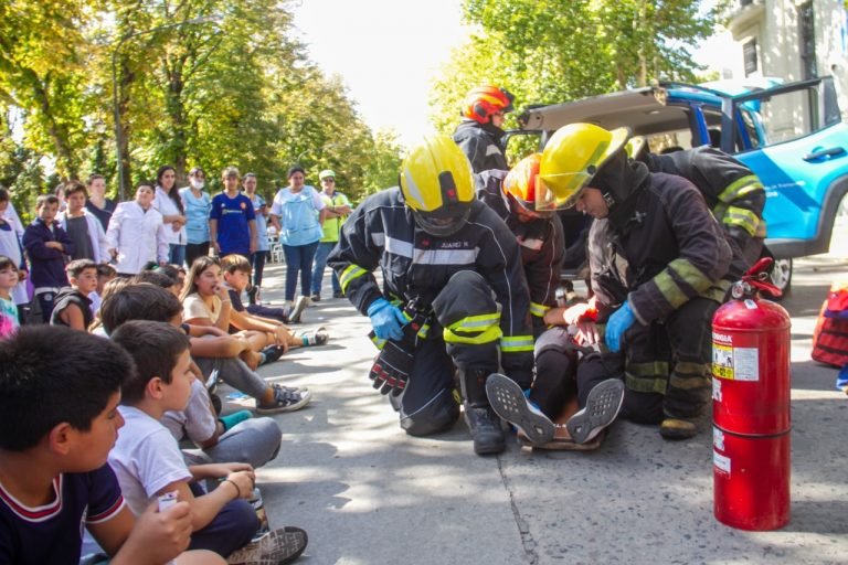 Entre la cantidad de actividades programadas estuvo incluido también un simulacro de rescate en accidentes, esta fue una clase abierta accionada por integrantes del cuerpo activo de Bomberos Voluntarios de Las Flores.
