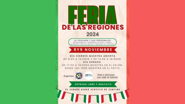 La Escuela Dante Alighieri invita a la 6ta edición de LA FERIA DE LAS REGIONES DE ITALIA que se llevará a cabo los días viernes 8 y sábado 9 de noviembre.