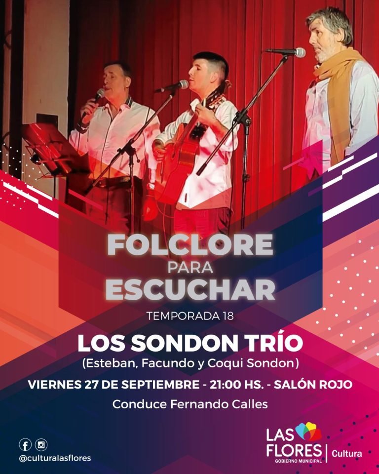 Esta noche desde las 21 hs el ciclo “Folclore para Escuchar”, idea y producción de Fernando Calles, presenta “Los Sondon Trío”. Esteban, Facundo y “Coqui” son integrantes de una familia de músicos florenses que mantiene siempre vigente las raíces musicales folclóricas nacionales y esta noche tendrán su espacio en este importante ciclo que transita ya su temporada número 18. “Hablar de los hermanos Sondon, de todos ellos, es hablar de gente que viene cantando toda la vida”, dijo Fernando hoy en Frecuencia Personal. “Coqui componiendo letra y música, Facundo con su formación académica en música y el trío se completa con Esteban, con ese caudal de voz que tiene impresionante”, contó.