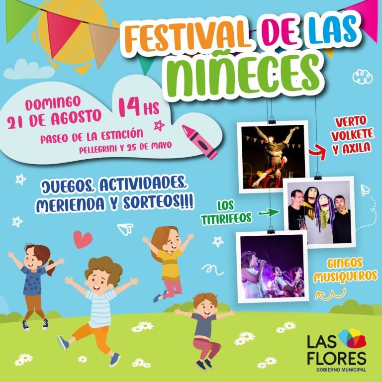 El próximo domingo 21 de agosto se realizará la celebración del “Día de las niñeces”. A partir de las 14 horas en el paseo de la Estación de calle Pellegrini y 25 de Mayo, chicos y grandes podrán disfrutar del Festival que va a contar con diferentes espectáculos artísticos: habrá música de la mano del grupo “Gingos Musiqueros”, títeres con “Los Titirifeos” y circo con “Verto Volkete y Axila”.