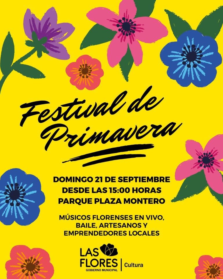 Para el próximo domingo 21 de septiembre a las 15 horas, la Dirección Municipal de Cultura programó la realización del Festival de la Primavera.