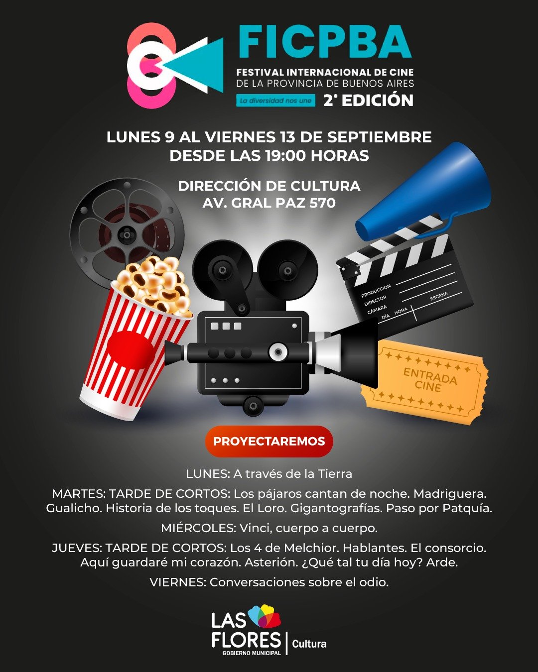 Desde el lunes 9 al viernes 13 de septiembre en la sala Hugo Mario Ianivelli de la Dirección Municipal de Cultura, a partir de las 19 Hs se proyectarán películas y cortometrajes en el marco del Festival Internacional de Cine de la Provincia de Buenos Aires .
