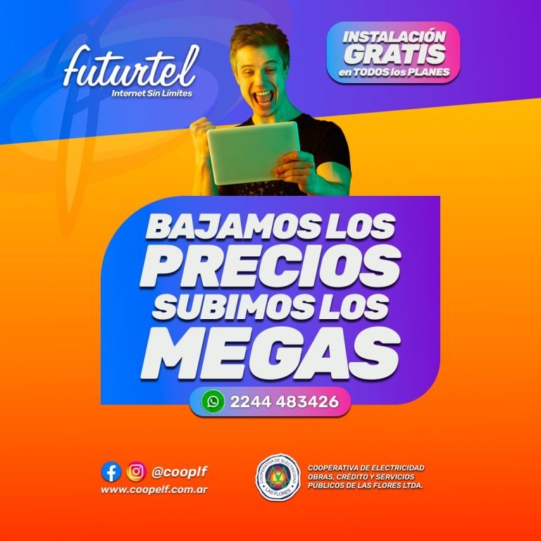 La Cooperativa de Electricidad de Las Flores, a través de Futurtel, sigue apostando al crecimiento y la calidad de sus servicios de telecomunicaciones. En este sentido, a partir de Febrero de 2025, entran en vigencia nuevos planes de internet con mayor velocidad y precios accesibles, permitiendo que más hogares y comercios continúen conectados sin afectar su economía.