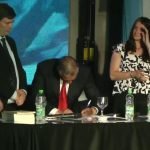 Luego de la presentación a cargo del locutor Fernando Calles y la proyección de un video institucional -que el público pudo observar en pantalla gigante-, se entonaron las estrofas del himno nacional argentino y se procedió a la toma del juramento y firma del acta correspondiente a la transmisión de mando del ingeniero Alberto Gelené.