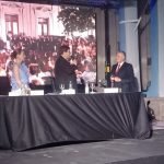 Enmarcado en los 40 años de democracia ininterrumpida que se cumplieron este 10 de diciembre pasado en nuestro país, se llevó a cabo el acto en la vereda del Palacio Municipal, con la presencia de los intendentes desde 1983 a la fecha, como invitados especiales, junto a todos los presidentes del Concejo Deliberante en el mismo período. También estuvieron presentes el actual presidente del partido justicialista de Mar del Plata, Eduardo Coppola (primo del intendente) y funcionarios y medios de comunicación de la zona, así como trabajadores, familiares, amigos y vecinos de Las Flores.