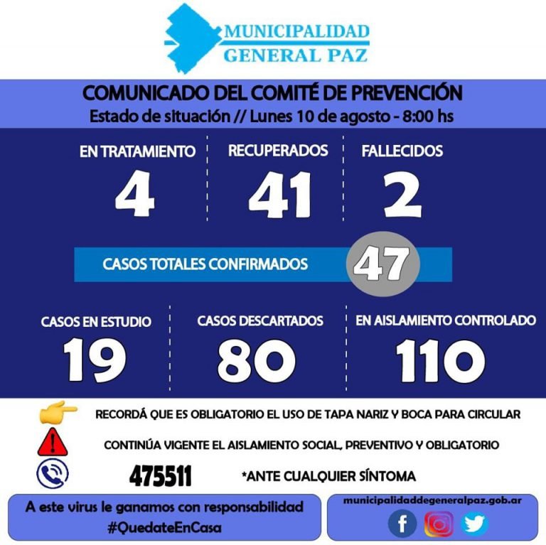 A la fecha – el informe se emitió pasadas las 13 horas, horas después de emitido el audio – el distrito cuenta con 4 personas en tratamiento por coronavirus, tiene 41 recuperados y 2 fallecimientos.
