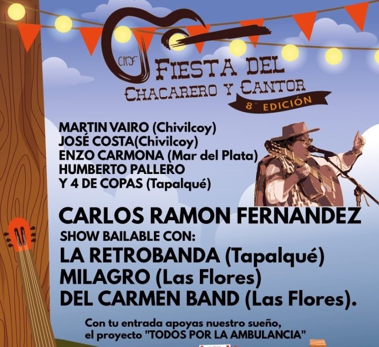 La 8º Fiesta del Chacarero y Cantor se hará, como otras veces, en el espacio cerrado del ferrocarril, para resguardar al público del frio. “Se está acomodando el piso, las instalaciones, las comisiones tratamos de tener todo listo para recibir a la gente de la mejor manera”, agregó. La actuación de Carlos Ramón Fernández está prevista para las 23 hs aproximadamente, pero la grilla tiene horario de inicio a las 20 con una variada cartelera de excelente nivel, para que la gente pueda disfrutar todo. Varios artistas en la parte folclórica y en la parte bailable para el final. También servicio de cantina y parrilla toda la noche.