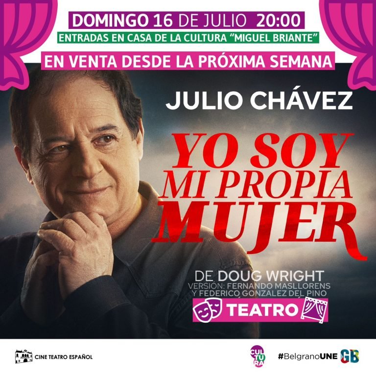 En julio llega a General Belgrano uno de los mejores actores de la Argentina, Julio Chávez, con su exitosa obra «Soy Mi Propia Mujer». El talentoso, reconocido y premiado artista llega por primera vez a General Belgrano.
