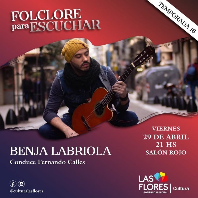Esta noche en el salón Rojo Municipal el ciclo Folclore para Escuchar que conduce Fernando Calles presentará la actuación del cantante y guitarrista Benja Labriola.