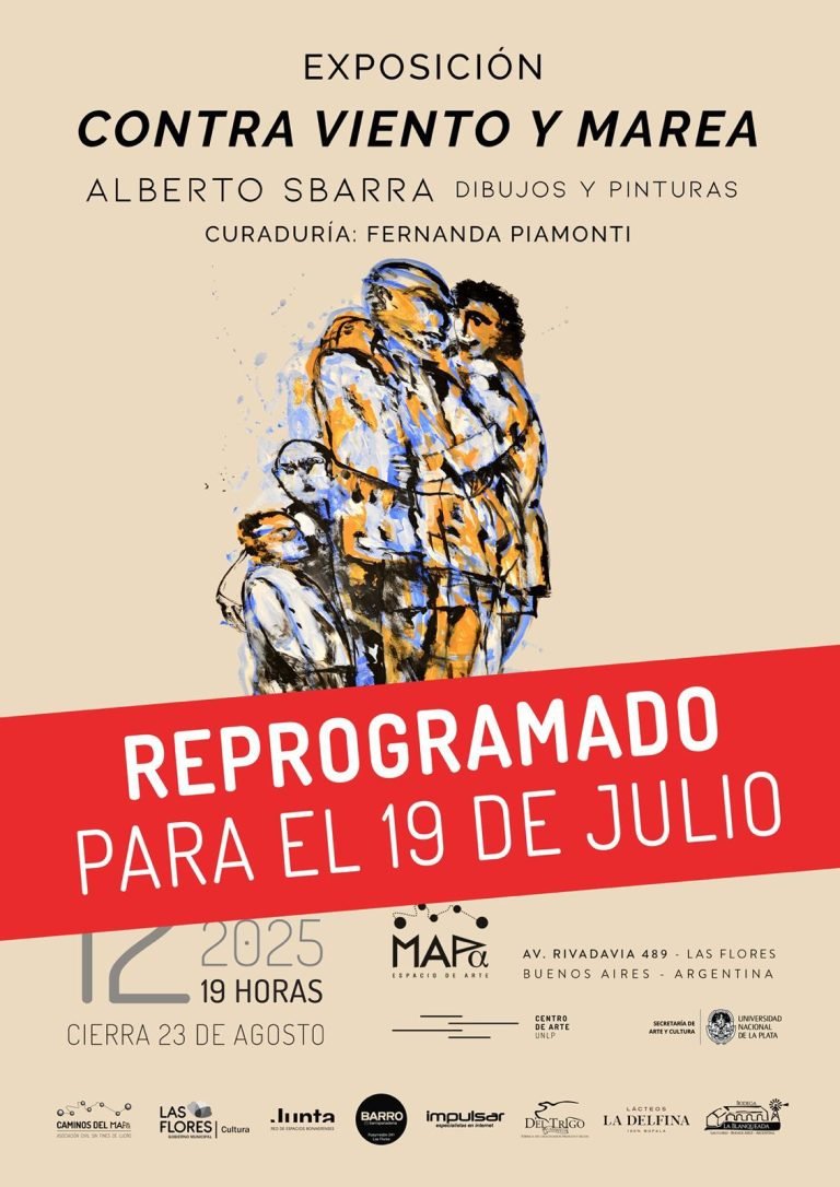 MAPA Espacio de Arte informa que la inauguración de la exposición de Alberto Sbarra “CONTRA VIENTO Y MAREA”, se reprograma para el 19 de julio, por razones de fuerza mayor.
