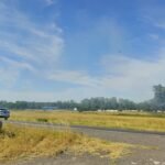 En la mañana de éste lunes, y tras el incendio de las últimas horas registrado en la Planta de Tratamiento de Residuos (basurero), los bomberos siguen trabajando en la zona ya que, a simple vista, detrás de los terraplenes se producen pequeños focos que avanzan a campos aledaños y generan humo que atraviesa la ruta de oeste a este.