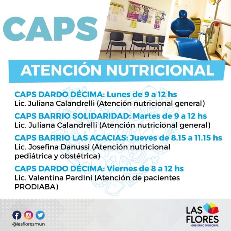 Lunes 9 a 12 horas – CAPS Dardo Décima: Lic. Juliana Calandrelli (Atención nutricional general)