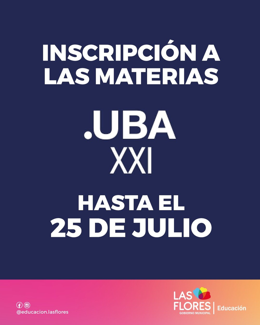La Secretaría de Educación informa que hasta el 25 de julio se encuentra abierta la inscripción a las materias de UBA XXI.