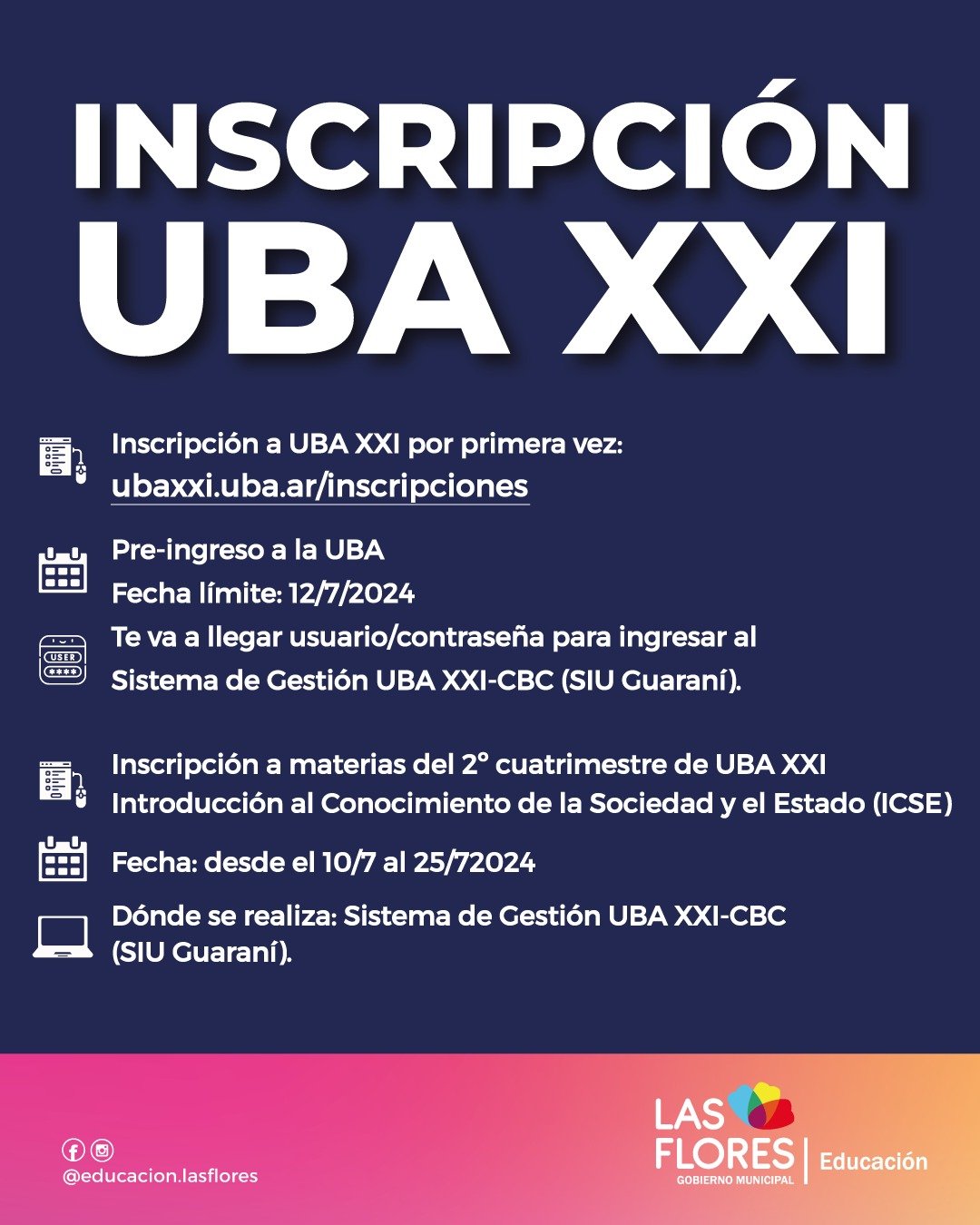 La Secretaría de Educación informa que hasta el 12 de julio  se encuentra abierta la inscripción a UBA XXI, para quienes se inscriben por primera vez.