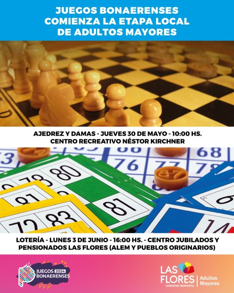 La Dirección de Adultos Mayores comunica que se dará inicio a la Etapa Local de los Juegos Bonaerenses 2024.