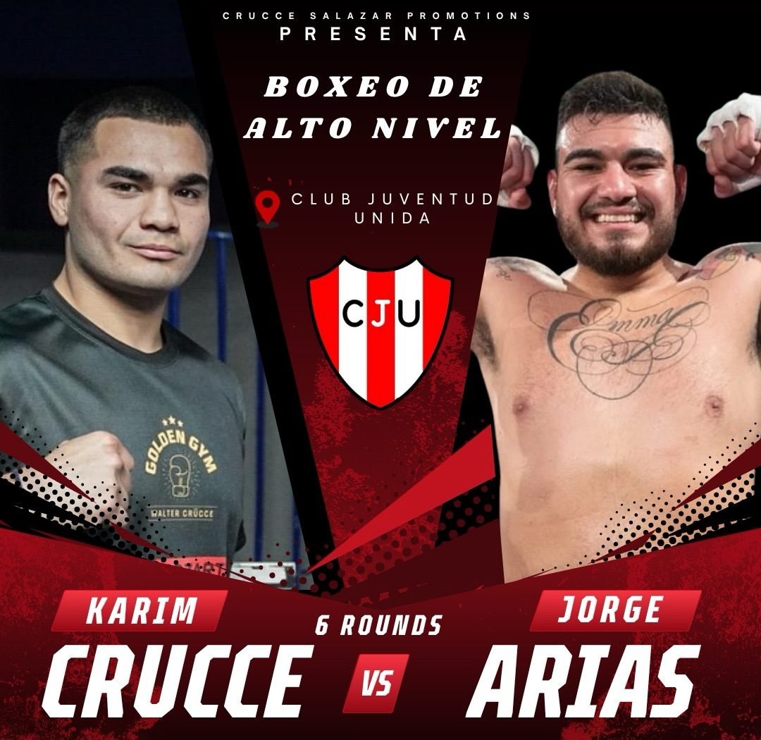La pelea de fondo la protagoniza Karim Crucce que se enfrenta a Jorge Arias, en un encuentro que será clave para el local. “Para mañana estamos bien, tranquilos. Nos tiene que ir bien para que los promotores me vean, y nos sirva nacional e internacionalmente”, expresó Karim hoy en una entrevista en Play Radios. «Es la pelea mas importante de mi carrera, que si sale todo bien como pensamos nos va a abrir la puerta a todo, nacionalmente parar pelear algún título, por ejemplo».