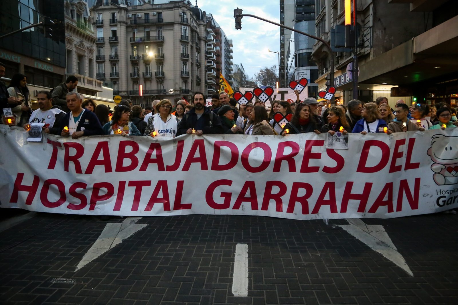 La multitudinaria marcha se llevó a cabo este jueves bajo la consigna “El Garrahan no se apaga”, arrancando en la esquina de las avenidas Callao y Corrientes y finalizando en el Obelisco con la lectura de una “Carta a la Comunidad” por parte de la reconocida actriz Cecilia Roth, mostrando su solidaridad con la lucha de médicos, residentes y pacientes del nosocomio.