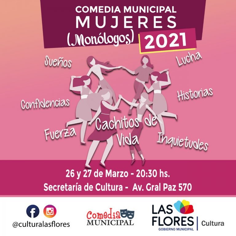 La Secretaría de Cultura y la Comedia Municipal tienen el agrado de invitar a la comunidad a disfrutar la puesta en escena de “MUJERES”, una serie de monólogos interpretados por Agustina Martínez, Alicia Favre, Marcela Patronelli, Mariana Aguirre, Elisa Fullone, Sonia Bertholet, Andrea Barros y Eliana Laborde, bajo la coordinación y dirección de Susana Rizzo.