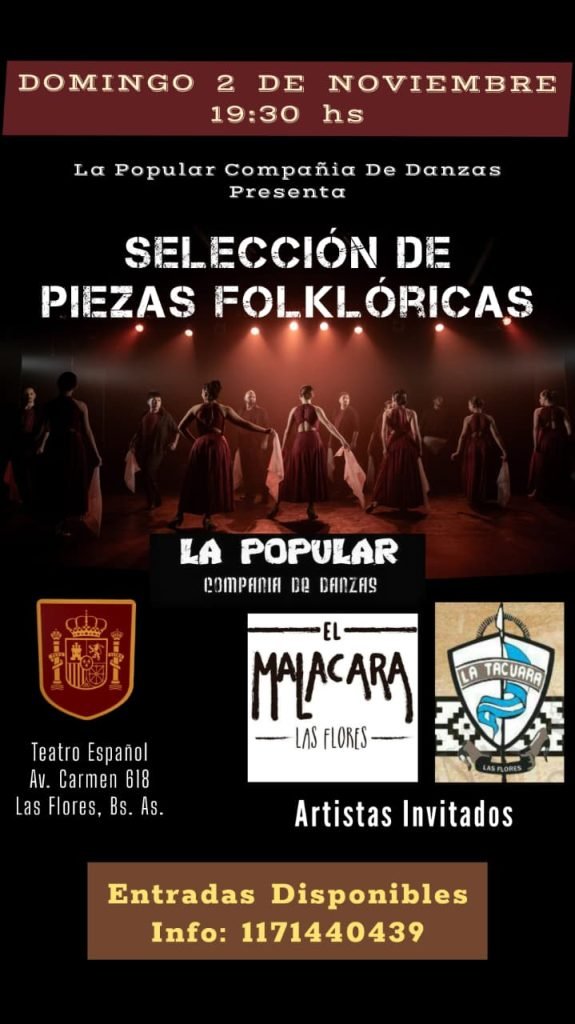 Este domingo, La Popular compañia de danzas presenta una propuesta de danzas para disfrutar en familia. El 2 de noviembre «Seleccion de Piezas folklóricas» desde las 19:30 hs en el Teatro Español.