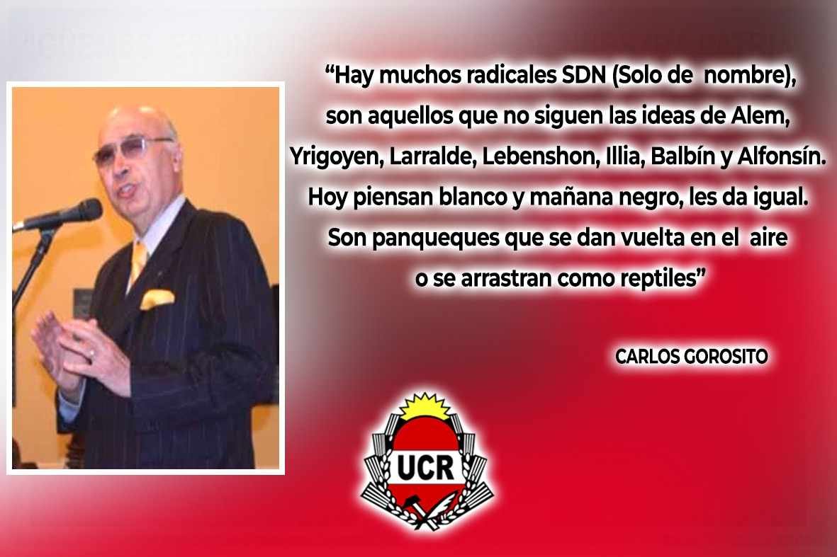 «Los jubilados no deben pagar el cruel ajuste; no se debe poner de rodillas a los jubilados. El radicalismo siempre deber estar del lado de los jubilados. Los Diputados que se dicen radicales y que apoyan el veto presidencial nada tiene que ver con la tradición histórica de la UCR». Carlos Antonio Gorosito.