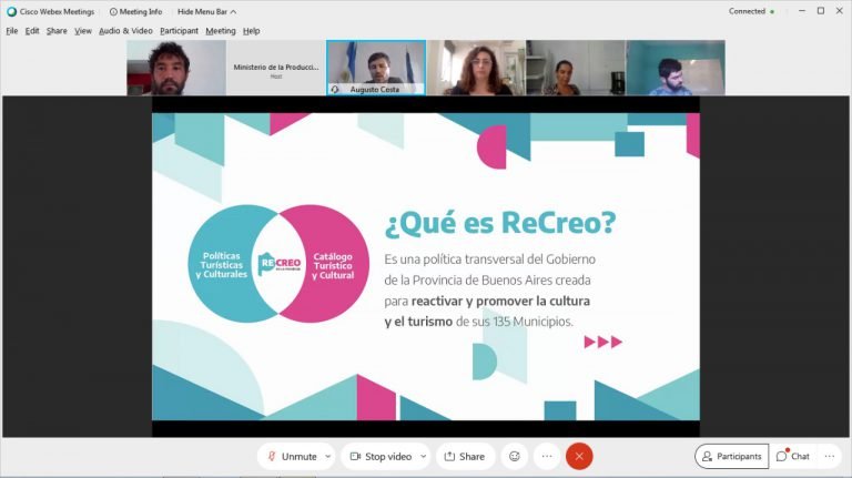 En la presentación virtual de ReCreo también estuvieron Nicolás Wainszelbaum, subsecretario de Industrias Creativas e Innovación Cultural; Ianina Bak, subsecretaria de Turismo; Ezequiel Grimson, subsecretario de Políticas Culturales; Lorena Riesgo, subsecretaria de Promoción Sociocultural y representantes de las áreas culturales y turísticas de los 135 municipios bonaerenses.
