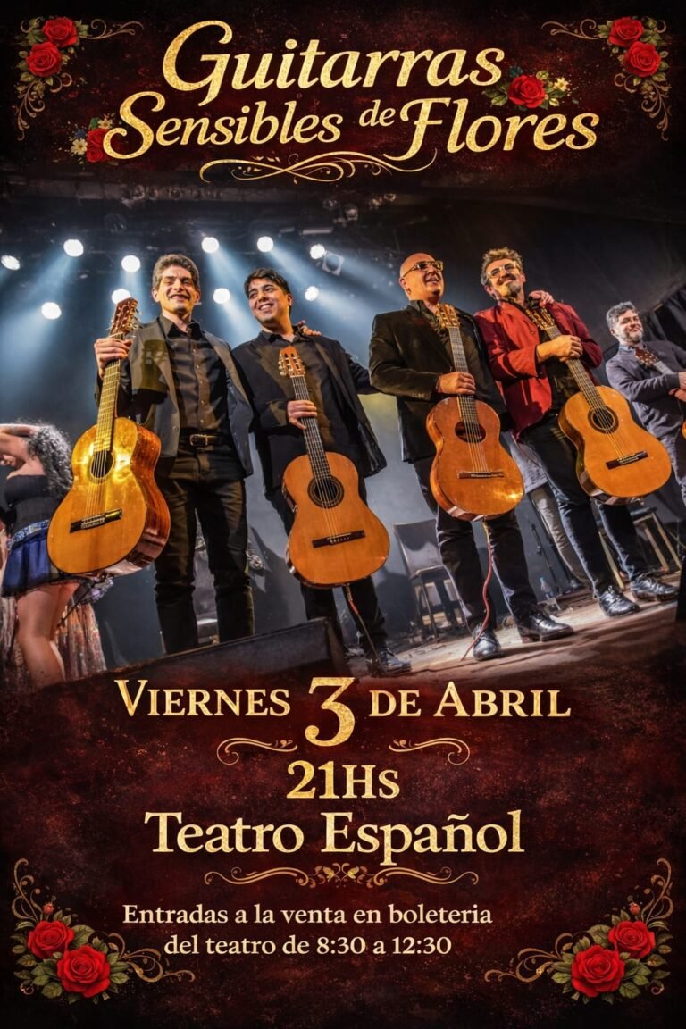 Este viernes 3 de abril, desde las 21Hs, el Teatro Español invita a la presentación del grupo “Las guitarras sensibles de Flores”.