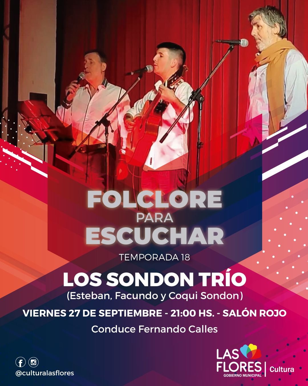 El ciclo “Folclore para escuchar”, una idea y producción de Fernando Calles con fuerte apoyo de la Secretaría de Deportes y Cultura, en su temporada número 18, presenta al grupo florense “Los Sondón Trío».