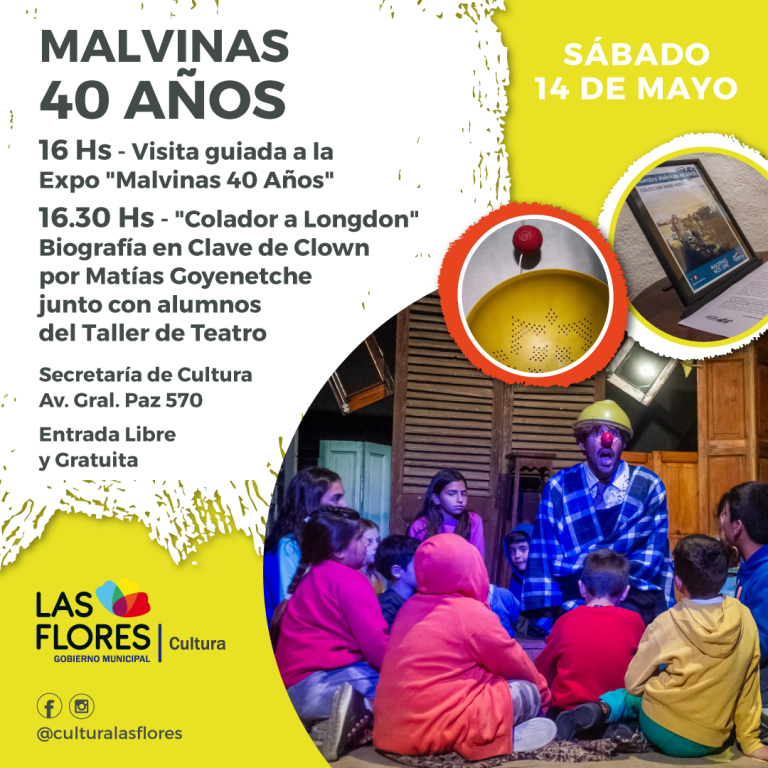 Finalizados los recorridos, se volverá a poner en escena la obra teatral titulada “Colador a Longdon”, una biografía en Clave de Clown con Matías Goyenetche, quien actuará junto a sus alumnos del Taller de Teatro.