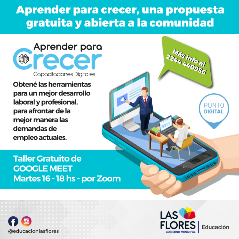 La Secretaría de Educación de la Municipalidad comunica que se encuentra abierta la inscripción para el Taller Gratuito de GOOGLE MEET que se dictará mañana martes 16 a las 18 horas.